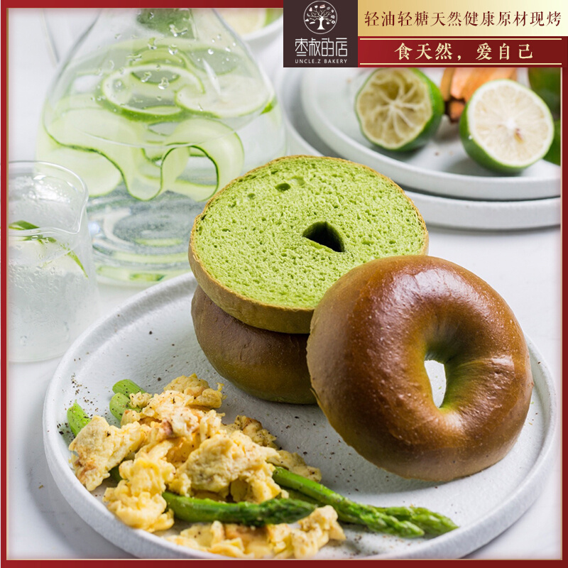 枣叔的店抹茶全麦贝果面包欧包